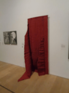 In the centre of the room are a set of Crocheted human-size figure by Rita McGurn – an uncanny domesticity. On the wall, Double Labia by Janis K. Jeffries (pictured above). An interesting observation in the label text explores textiles as a feminine medium due to its historical links to domestic labour.