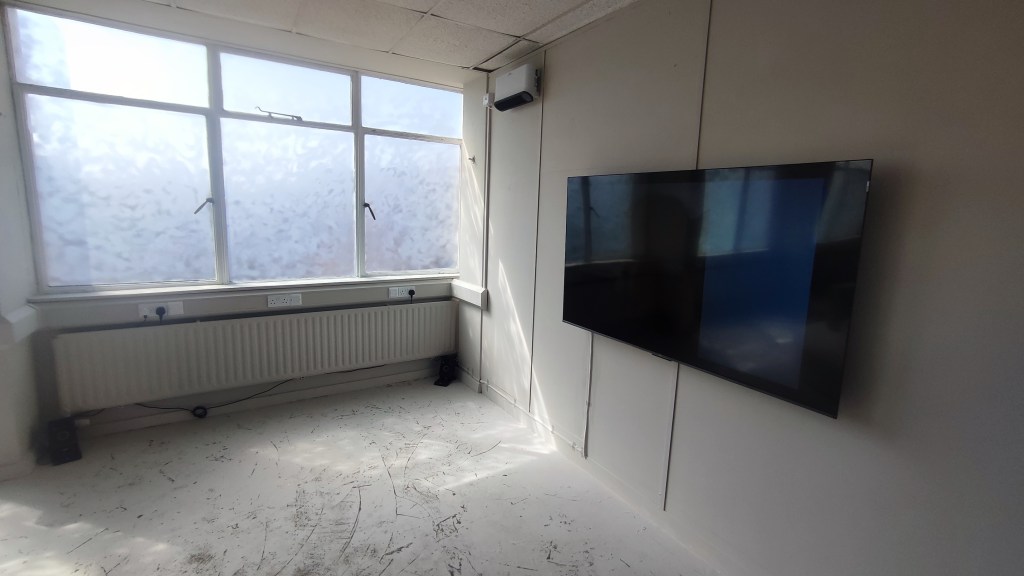 Getting into the building is, at first, a bit daunting. There’s no ‘stumbling across’ this space. Texting a number on an indistinct piece of paper at the buildings entrance will summon someone to let you in. The faux-exclusivity this gives the gallery is a shame and will have an impact on footfall. Yet, my text is immediately answered and Nick Booton – artist and studio-holder – brings me upstairs.