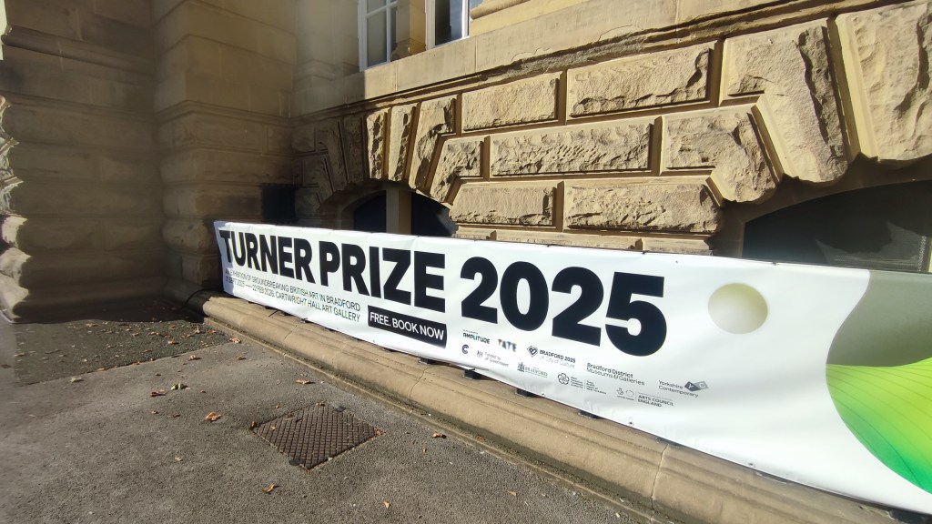 The whole of Manchester is sleeping under a blanket of fog. It is only midway through the train journey that it lifts. I am travelling to Bradford – 2025’s City of Culture – to visit Cartwright Hall, this year’s venue for the Turner Prize exhibition.