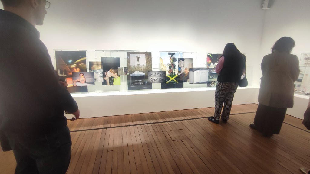 The exhibition is a snapshot of discontent. Of a fervent, politically charged, progressive, leftist rage – one which aligns with a lot of my beliefs. It is nothing I haven’t heard before, but it certainly cuts to the core of it. Bizarrely slowed down pop-culture – Charli XCX’s 365, and a choral Rhianna song – become disturbing rallying cries. They overlap with images of queer bodies, of protest, of intersecting identities, or joy, and of rage. I imagine, if you are predisposed to scoff at such political stances, then this exhibition would feel very 6th form. On some level it is. It is simple, but each simplicity builds into a multifaceted project of liberation and activism.