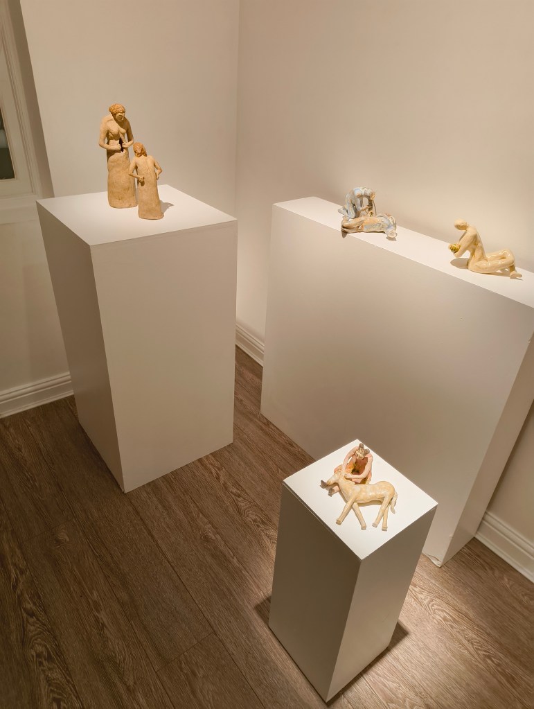 Maite Villamor brings protean figures emerging from something unknown and primordial. Their torsos are more defined, slightly slumped, as if tired from the act of creation. Their heads are exposed and empty, perhaps waiting. Each work is titled with bold strong words: rupture, uncarried, unholding. I sense they carry themes of post-natal bereavement, but that seems a particularly pointed reading.