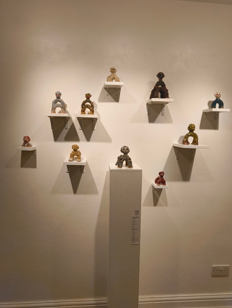On the second floor, a viewing gallery of playful figures stares you down. Their gaze sticks to you. Created by Victoria Ellis, these rooted, reserved figures have an awful lot of character to them. Through simple arches, Ellis presents an array of totem-like, doll-like creations. Their faces are highly expressive through the simplest of lines. Both charming and aloof, it feels like they’re keeping a secret from you. As if they know some fundamental secret that you don’t. Chimeric, folksy and innovative, I cannot praise them enough.