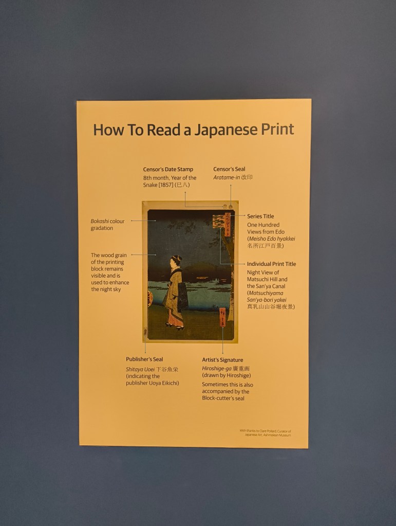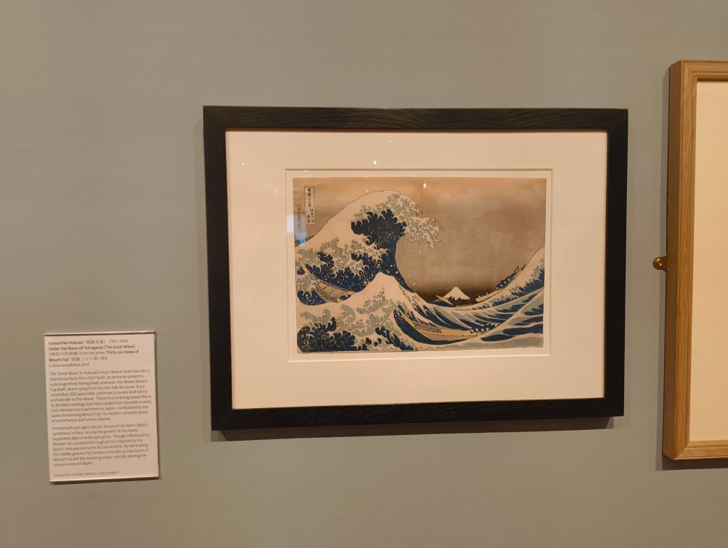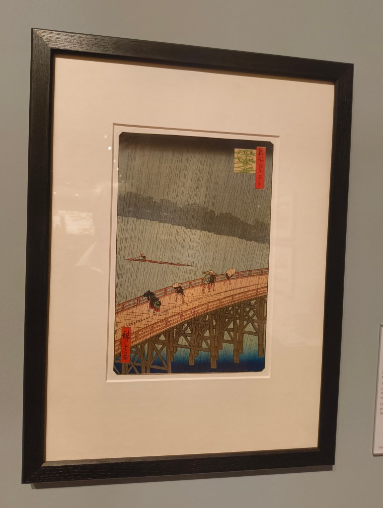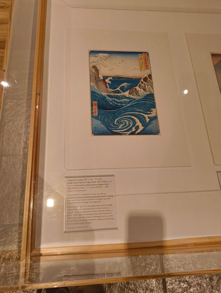 We see – through the inclusion of woodblock prints by Nana Shiomi – the influence of ukiyo-e artwork on subsequent generations. This theme is brought up frequently, and many a mention is made on its influence on Western Art. Notably, no Western Art is on display. I think this is a sensible move, as it removes the risk of decentering Hokusai and Hiroshige’s art.