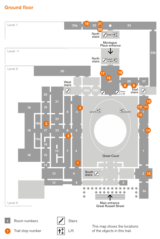 This can be problematic. Take the British Museum’s Collecting and Empire trail, for example. By platforming 21 orange icons, it suggests that only these 21 objects are relevant to the theme of Collecting and Empire – a laughable claim – especially since the Benin Bronzes aren’t even included on this trail. Here, knowledge can be seen to be restricted cartographically.