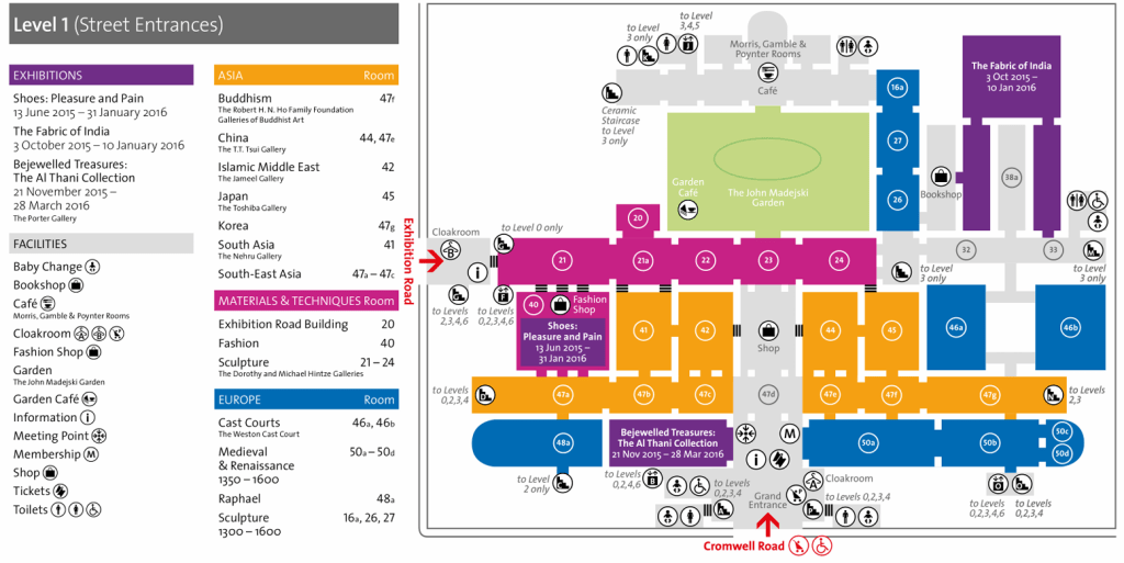 Looking at this Map from the National Gallery, we could also infer that the map differentiates between what is the ‘real’ museum, and what is peripheral. Here, colours are used to separate the cafe from the gallery space. A cartographic claim that they are ontologically different.